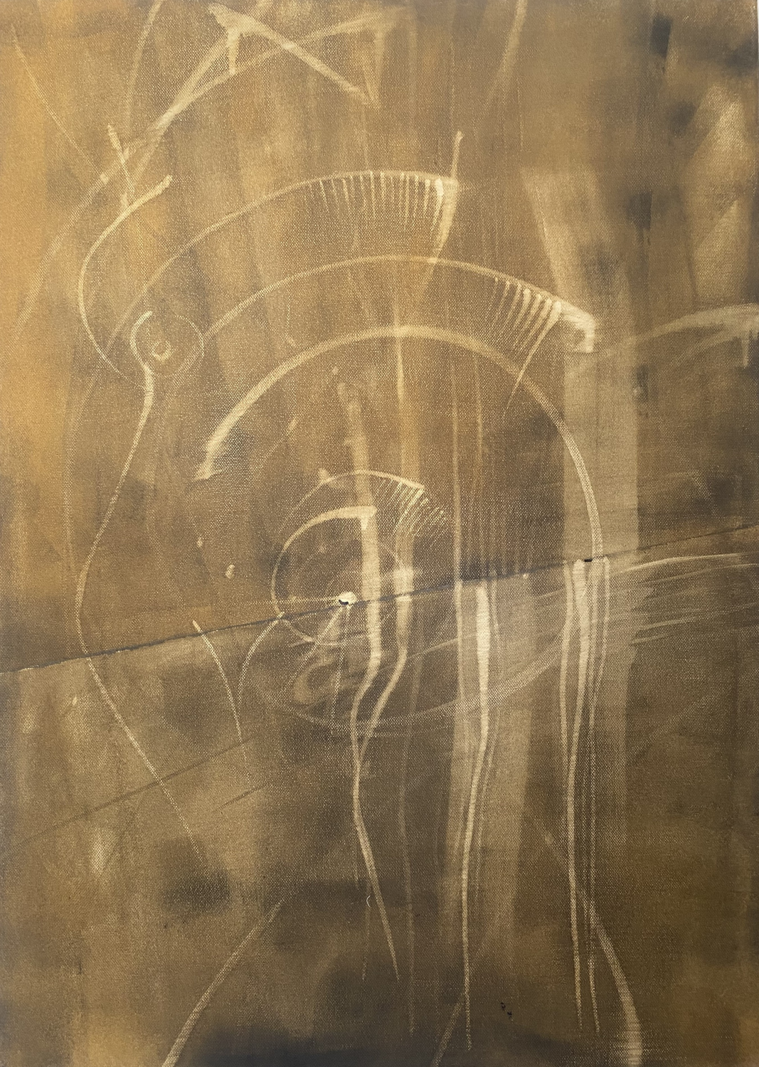 V tomto díle Karel Malivánek zkoumá čas ukrytý ve struktuře dřeva. Teplé hnědo-zlaté tóny připomínají prosluněný povrch starého kmene, zatímco jemné soustředné oblouky a vertikální linie evokují letokruhy – němý záznam let, které strom prožil. Povrch plátna je modelován lazurními vrstvami a jemnými stopami nástrojů, díky nimž působí jako reliéfní mapa přírodního rytmu.Obraz se pohybuje na pomezí abstrakce a organického zobrazení. Vnímavý divák může rozeznat nejen vizuální podobnost s dřevem, ale i symboliku – pomalé vrstvení času, propojení minulosti a přítomnosti, sílu zakořenění. „Letokruhy ticha“ jsou tak nejen obrazem, ale i meditací nad trváním, růstem a pamětí, kterou v sobě příroda nese.Tento vizuální záznam je zároveň intimním deníkem stromu i univerzálním obrazem cykličnosti života. Kontrast mezi měkkými, rozplývajícími se plochami a přesnými, jemně vyrývanými liniemi umocňuje dojem křehké rovnováhy. Dílo tak nabízí klidné, kontemplativní zastavení, při němž se čas zpomaluje a divák se může ponořit do pomalého rytmu přírodních proměn.