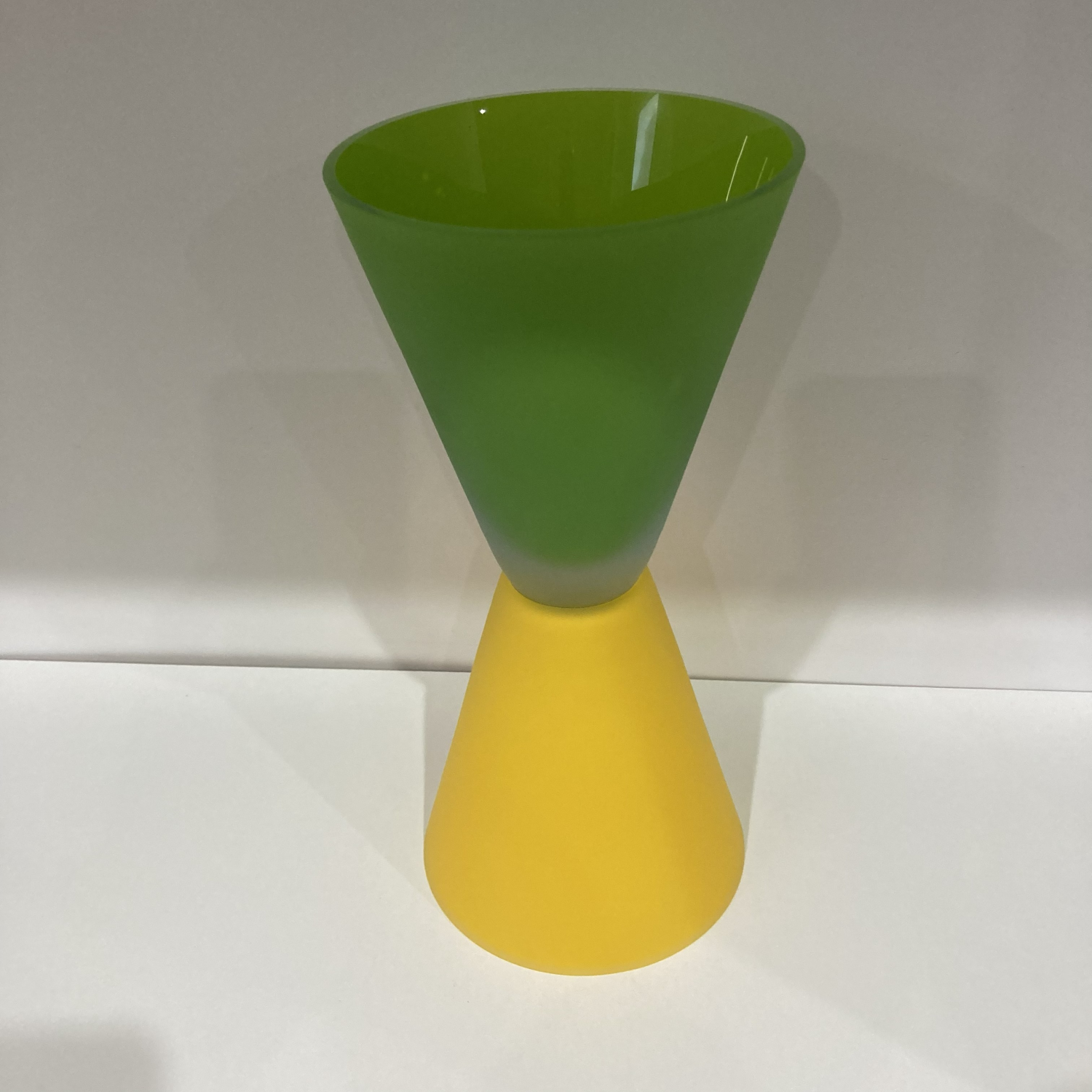 Celkově váza působí spíše jako autonomní designový artefakt či sochařský objekt užitého umění, kde estetická funkce dominuje nad čistě utilitárním účelem. Pokud chceš, můžeme ji zasadit i do konkrétního stylového nebo historického kontextu (např. postmodernismus, Memphis, současný produktový design).